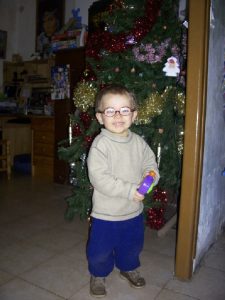 Il porte des lunettes depuis l’ âge de 6 mois. Il marche depuis ses 3 ans.