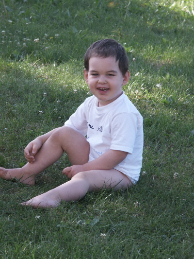 Paul s’est tenu assis sans appui pour ses 1 an. Il a commencé à faire du quatre pattes « grenouille » vers 18 mois, et se redresse de plus en plus. Aujourd’hui à 29 mois il marche avec aide mais pas seul.