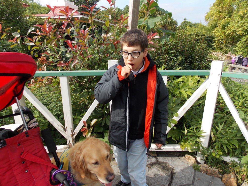 Il a un chien d’assistance que nous avons eu par Handi’chiens : Cheyen. C’est le fidèle compagnon de Valentin depuis 4 ans qui lui a permis de progresser dans le regard, le gestuel, etc…