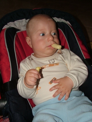 Adam est un petit gars très joyeux. A 15 mois, il a le développement physique et mental d’un enfant de six à sept mois. Il peut ramper mais ne peut encore pas s’asseoir seul. Il mange très bien et a un peu de problème de reflux.