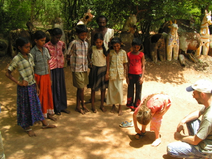 Temple à MahaballipuramMahaballipuram : Tout le monde a sa place sur la plage y compris les vaches !Sur la plage de Mahaballipuram, chaud devant !Balade en rickshaw1er éléphant au temple de PondicherryLes éléphants à l’entrée des temples terrifient CamilleMaduraï et ses templesMarché de bananes : heureusement, tout le monde aime ça !Camille s’est fait faire un ensemble à Maduraï en une demi-heure, le résultat est plutôt réussi !ailleurs à Maduraï : Camille est attentive à la fabrication de ses habitsTailleurs à MaduraïKanyakumari, pointe sud de l’Inde et lieu de pélerinageMoment de rigolade…Varkala, sur la côte ouest, endroit paradisiaqueRamassage des noix de cocosVarkalaCamille en a un peu marre d’enlever ses chaussures à chaque temple et fait son show…Allepey et ses canaux: balade et nuit en bateauSur le bateauEcoliers sous la pluieRéserve de Mudumalaï : vu de loin, ça va, Camille n’est pas trop effrayée par les éléphantsToujours okOn rencontre de tout sur la route, y compris les singesPalais de MysoreMarché aux fleursCueilleuses de théDeuxième maman pour ce petit singe orphelinDans l’avion, un vrai moment de plaisir