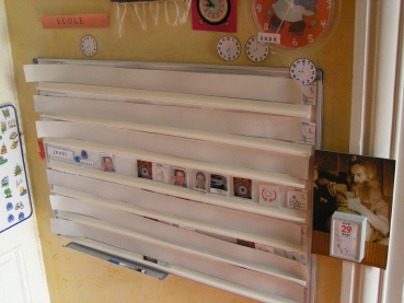 Il est accompagné de pendules (une générale et d’autres, plus petites aux moments importants de la journée), un travail de sensibilisation à la notion de l’heure étant mis en place en ce moment.