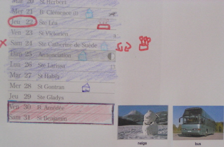 Je lui fais également une reproduction papier de ces journées « spéciales » que je lui glisse dans son sac afin qu’elle s’y repère si besoin.